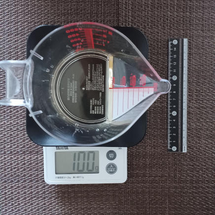 | 概要 | 横から見たカップ1杯234gのみりん(200cc) |